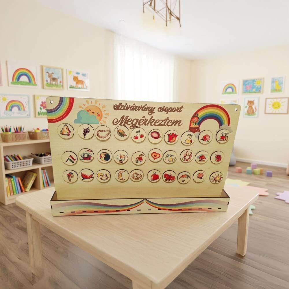 Személyre szabottan az ovis csoport nevével és a hozzá passzoló grafikával és színes jelekkel ellátott bilétákkal készítjük.