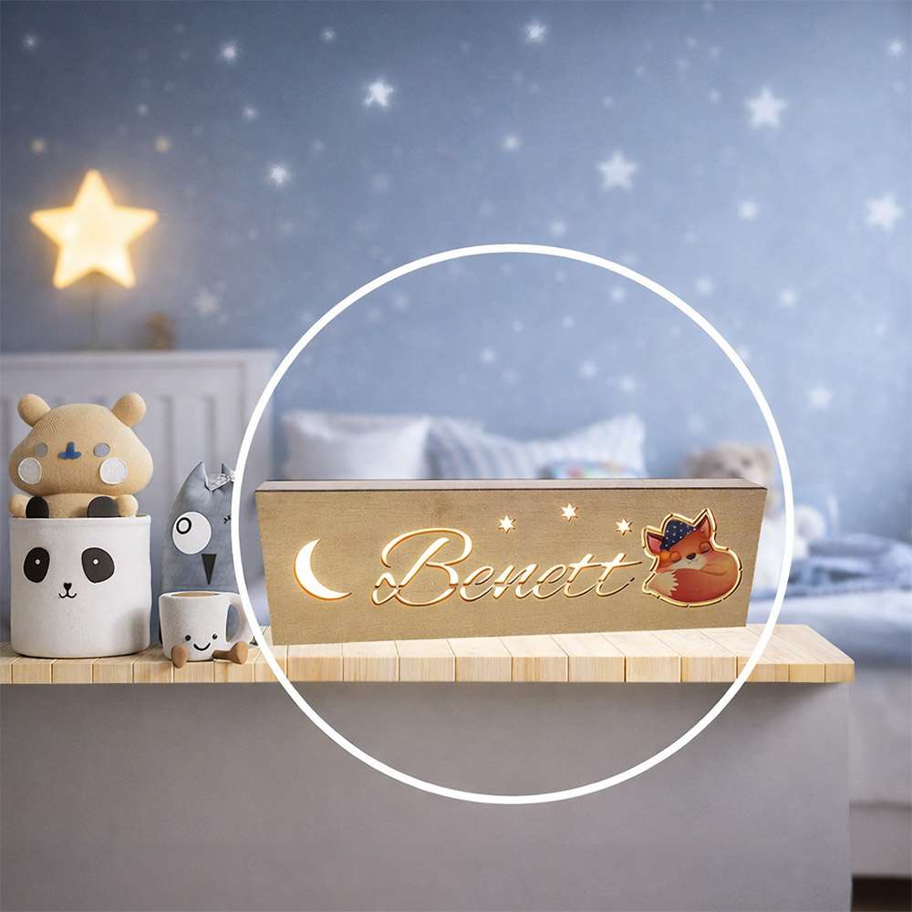 Névre szóló éjjeli lámpa választható színes figurákkal, éjszakai fény gyerekszobába.